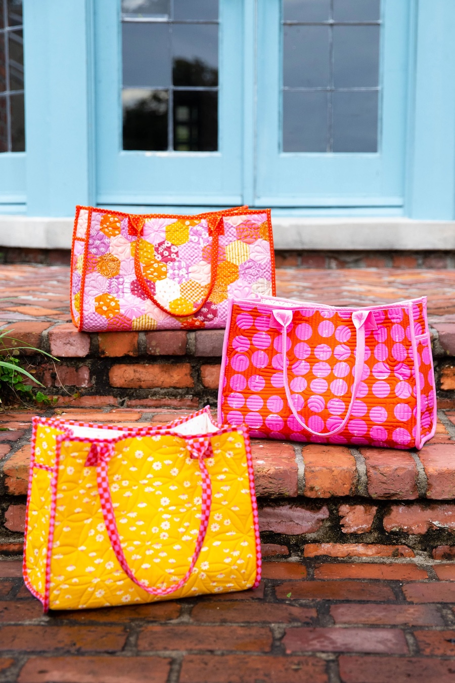 Use decorative webbing or make your own handles with your favorite fabric. Pattern includes three sizes.