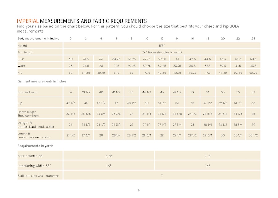 Recommended fabrics: medium-weight woven fabrics such as denim, twill, corduroy, canvas, flannel, or light wool.