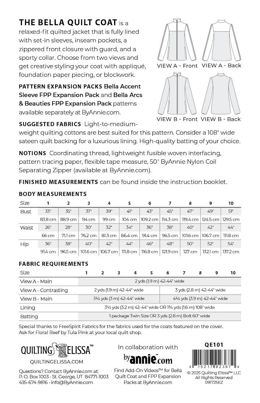 Bella Quilt Coat Pattern By Quilting Ellissa (Avail Dec)