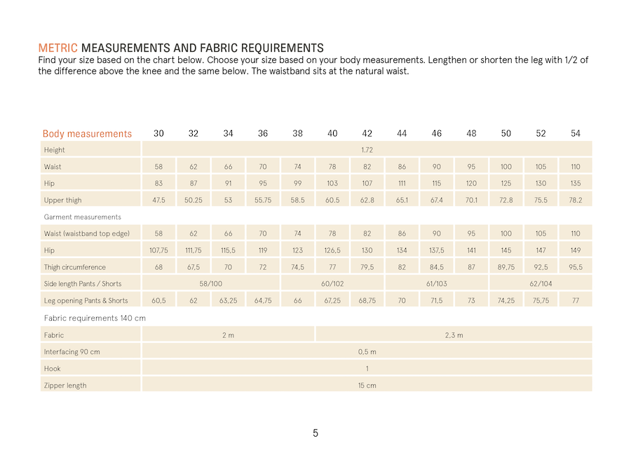 Recommended fabrics for the Bermuda Pants and Shorts include light to medium-weight woven materials such as cotton, linen, viscose and similar fabrics that provide good drape and comfort.