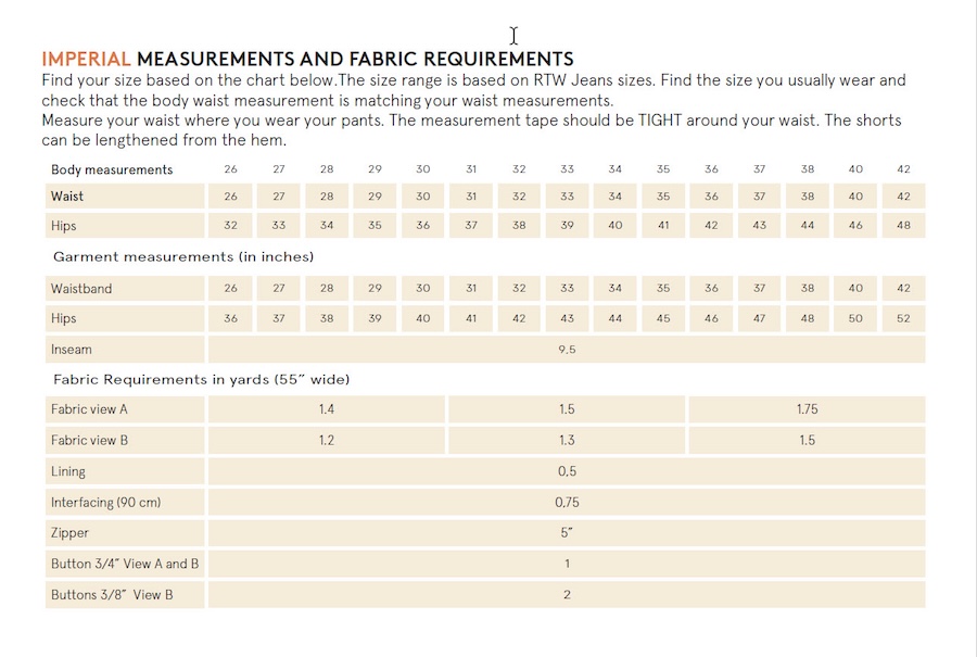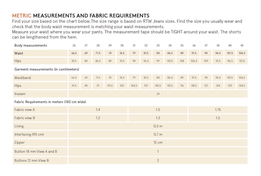 2. #Skill Level#The shorts have a front zipper and welt pockets.  If you are new to welts and zippers, it's only a matter of practicing a few times! Read the step by step blog post on how to install the zipper. Size range 26 - 42in.