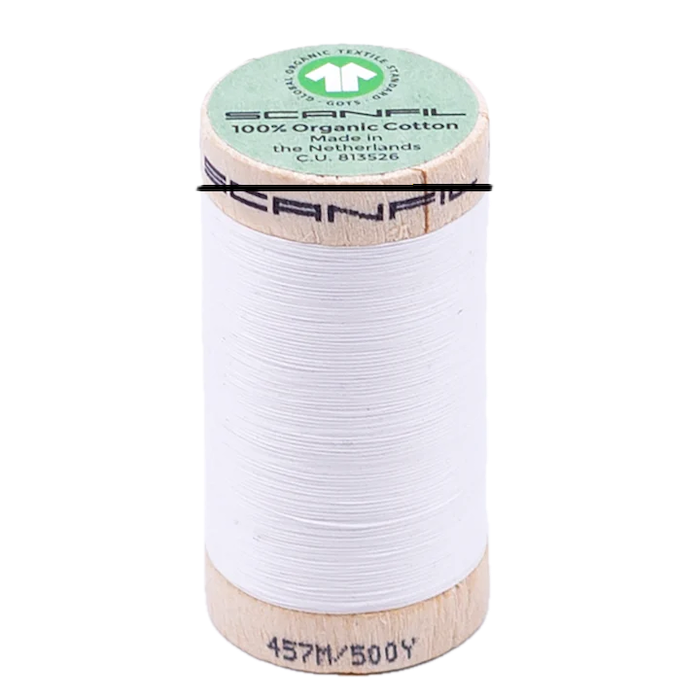 Bright White 50/2 Weight Scanfil Organic Thread 457 Metres (500 Yards)
