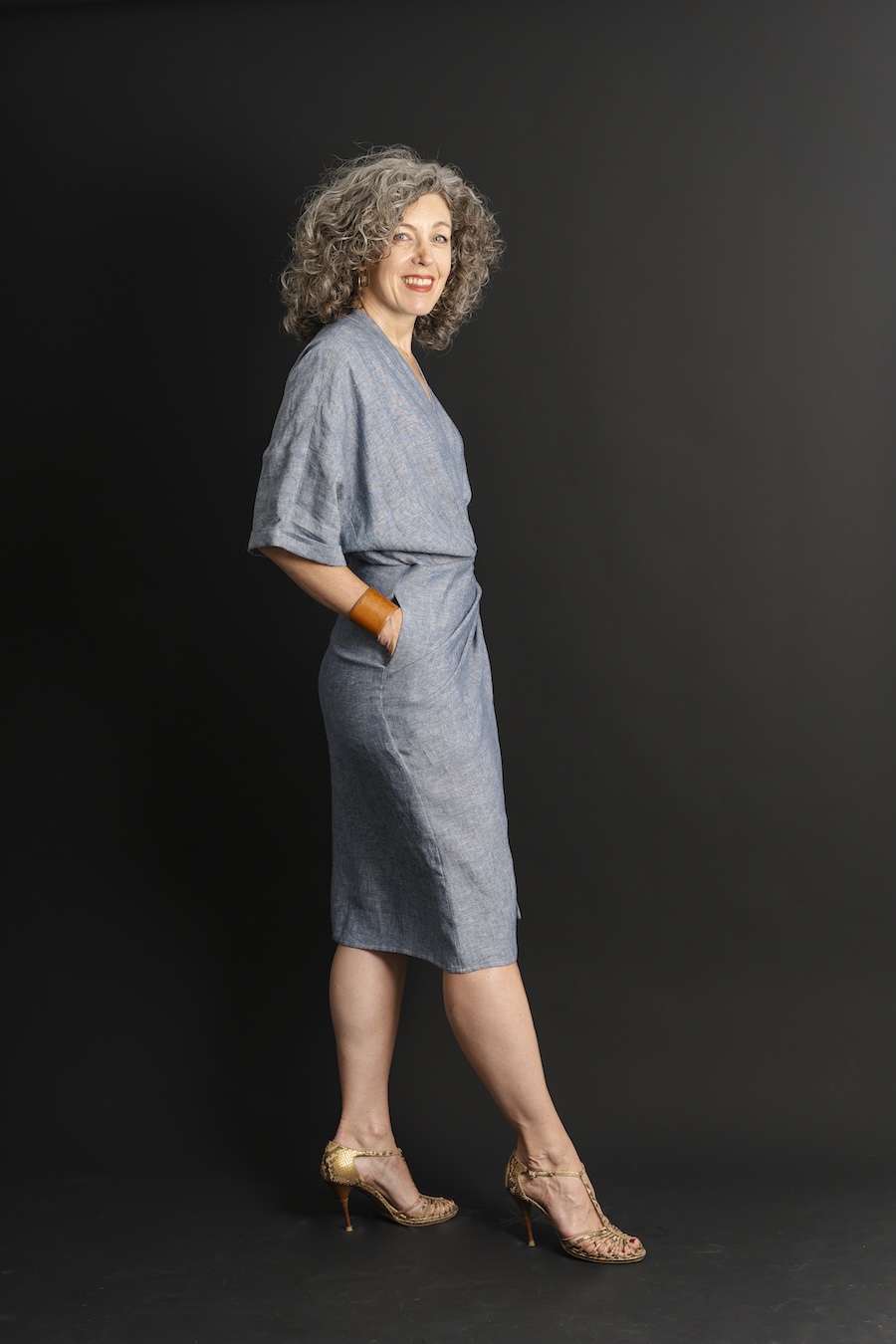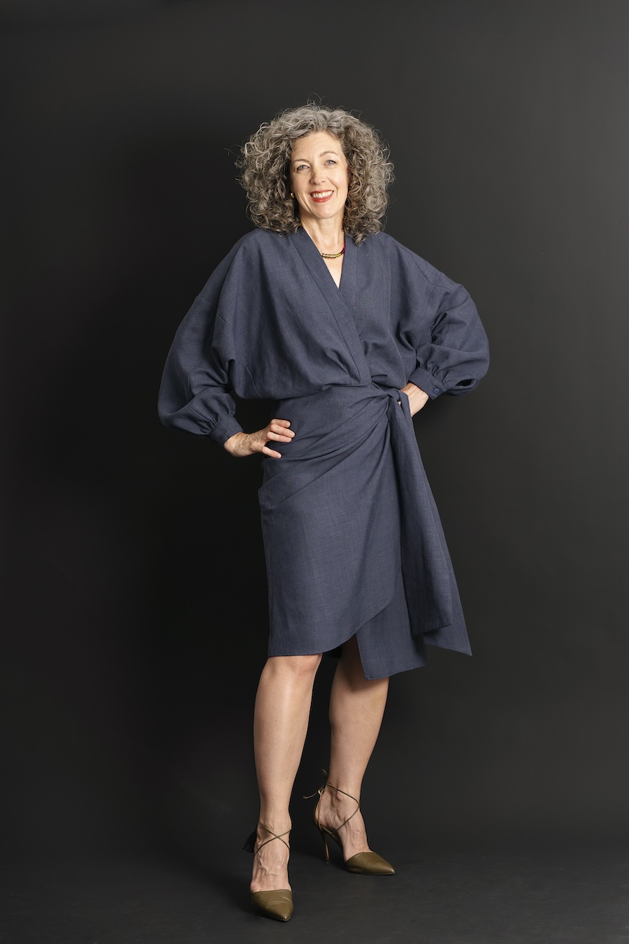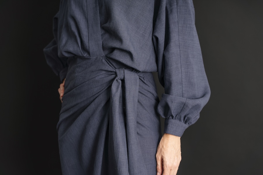 This pattern provides an interesting twist on the traditional wrap dress. It includes a sarong-style skirt, billowy sleeves, and a blousey top that’s a statement piece. You can also choose the short-sleeved version with cuffed sleeves. Both views have side pockets, a neck facing, and a forgiving fit that’s enhanced by pleats and darts. The neckline and skirt ties are especially secure on this dress, which means you can enjoy the ease of a wrap dress without common exposure worries.