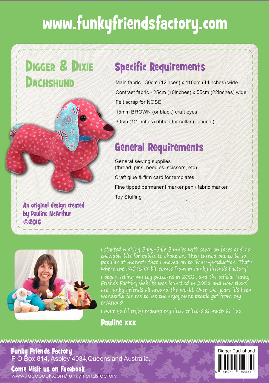 Digger & Dixie Dachshund Pattern By Funky Friends Factory