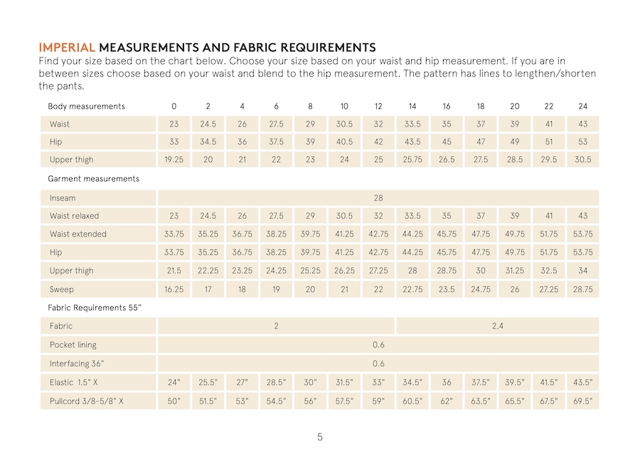 2. #Fabric & Notions#Choose a bottom weight fabric in cotton, linen, canvas, denim, or other traditional pant weight fabric. The pattern is designed for woven fabric without stretch. Use cotton or polyester for the pocket lining, and interfacing that supports the weight of your fabric.