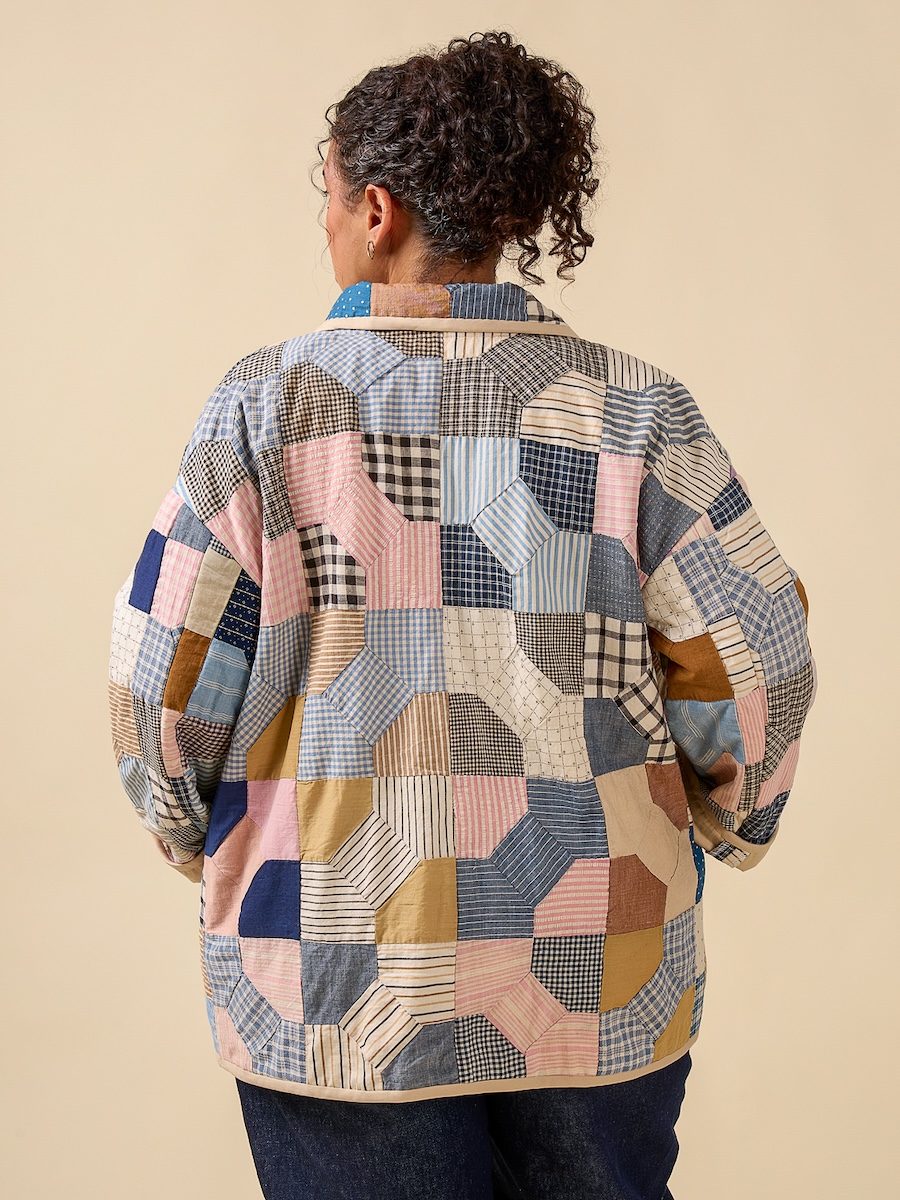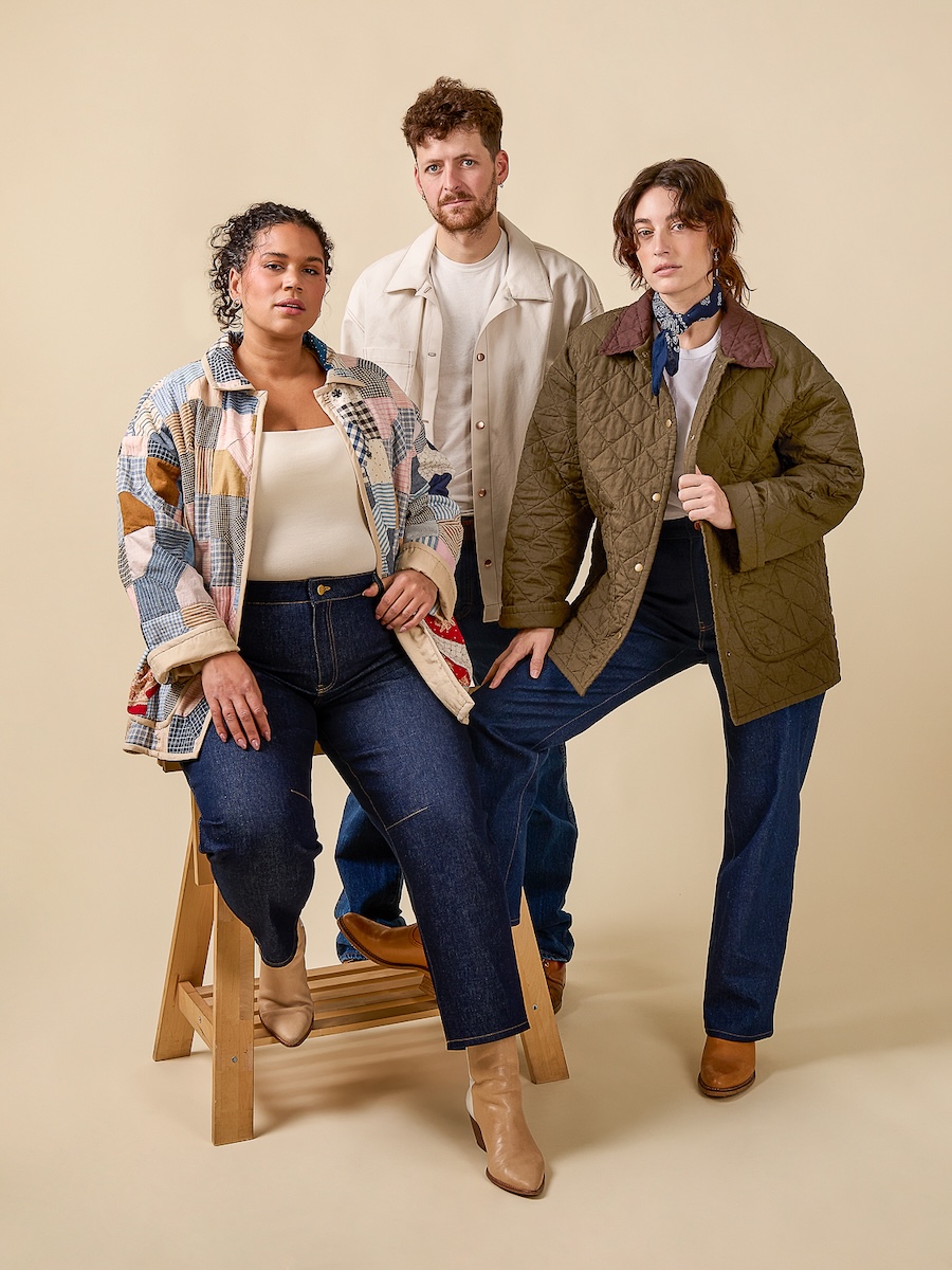 The Fowler Jacket is a utilitarian and gender-neutral sewing pattern offering two distinct outerwear styles in one: a classic barn coat and a cozy quilted jacket. It features an oversized, boxy shape with dropped shoulders, a two-piece sleeve, and a bandless collar, finished with your choice of button or snap closures.