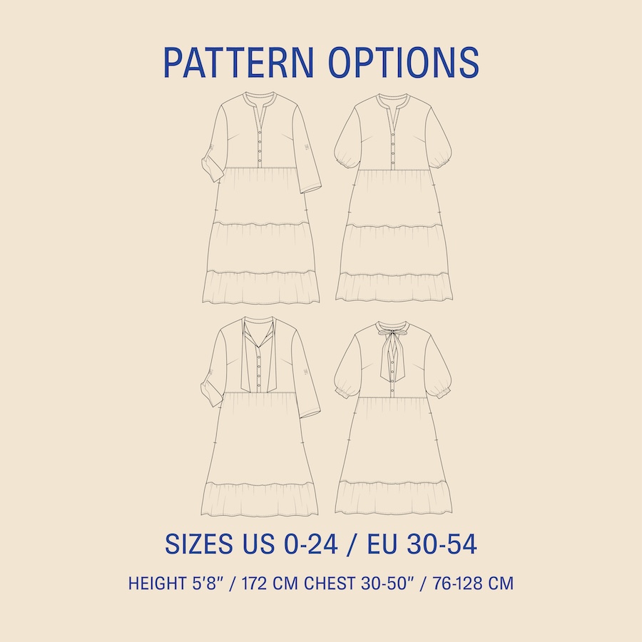2. #Skill Level#The Freedom dress sewing pattern requires a more refined set of sewing skills. You will be sewing a collar and handling gathers. Follow us on youTube and sew-a-long your Freedom dress.