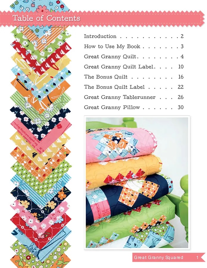Great Granny Squared includes complete instructions for four projects using Lori Holts Great Granny Block plus two quilt labels. Projects include two quilts one tablerunner and a pillow. There are over 30 pages of inspiration for your home. This pattern was previously published as a book in 2014.