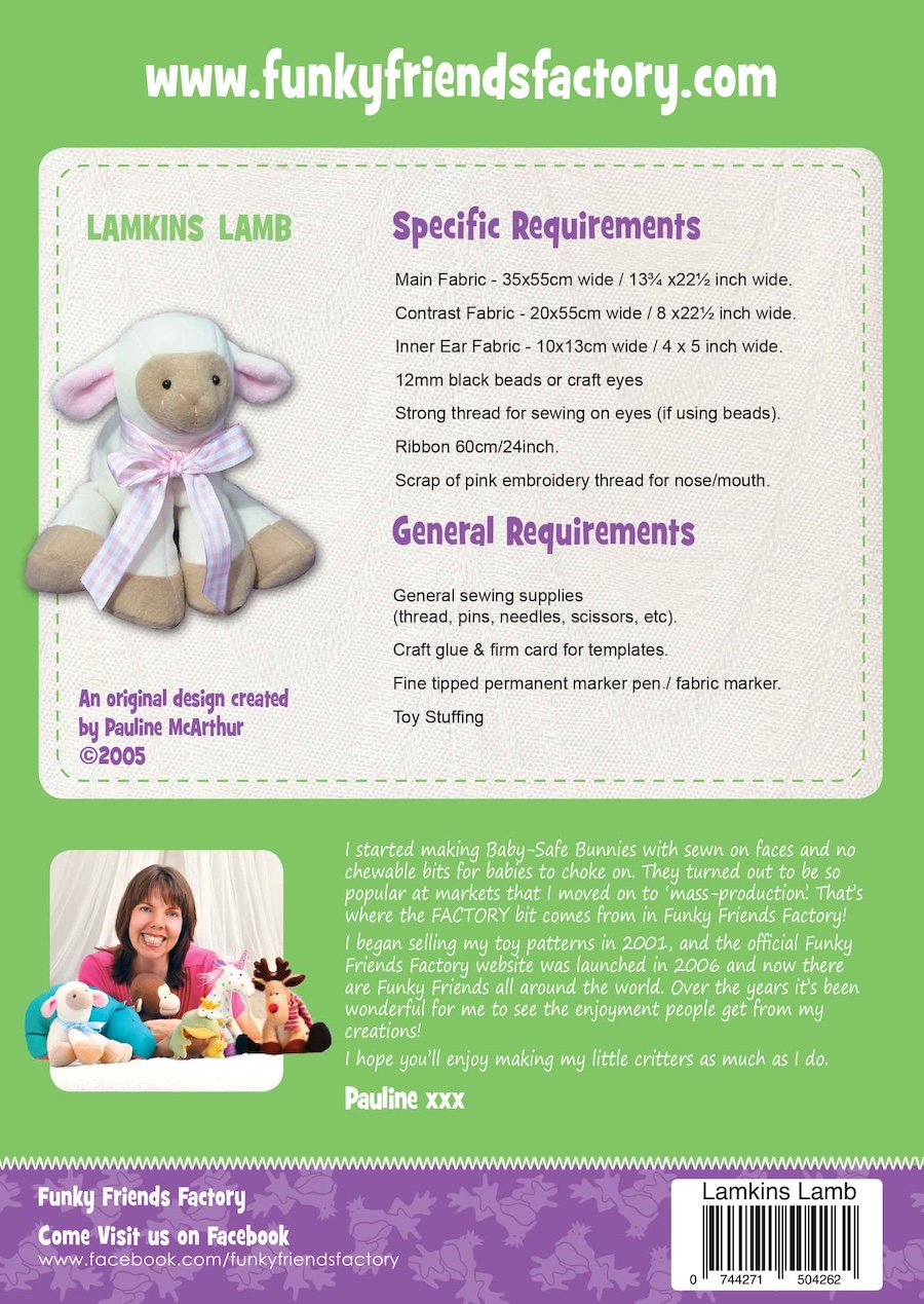 Lamkins Lamb is a cute and cuddly bedtime buddy, perfect for toddlers — and even for little babies if you opt for embroidered eyes instead of beads or craft eyes. This soft toy has floppy legs and a sweet lamb shape that makes it a lovely gift or comfort toy.