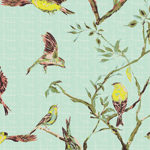 Birds in Blue Jay from Picnic Wovens by Suzy Quilts for AGF
