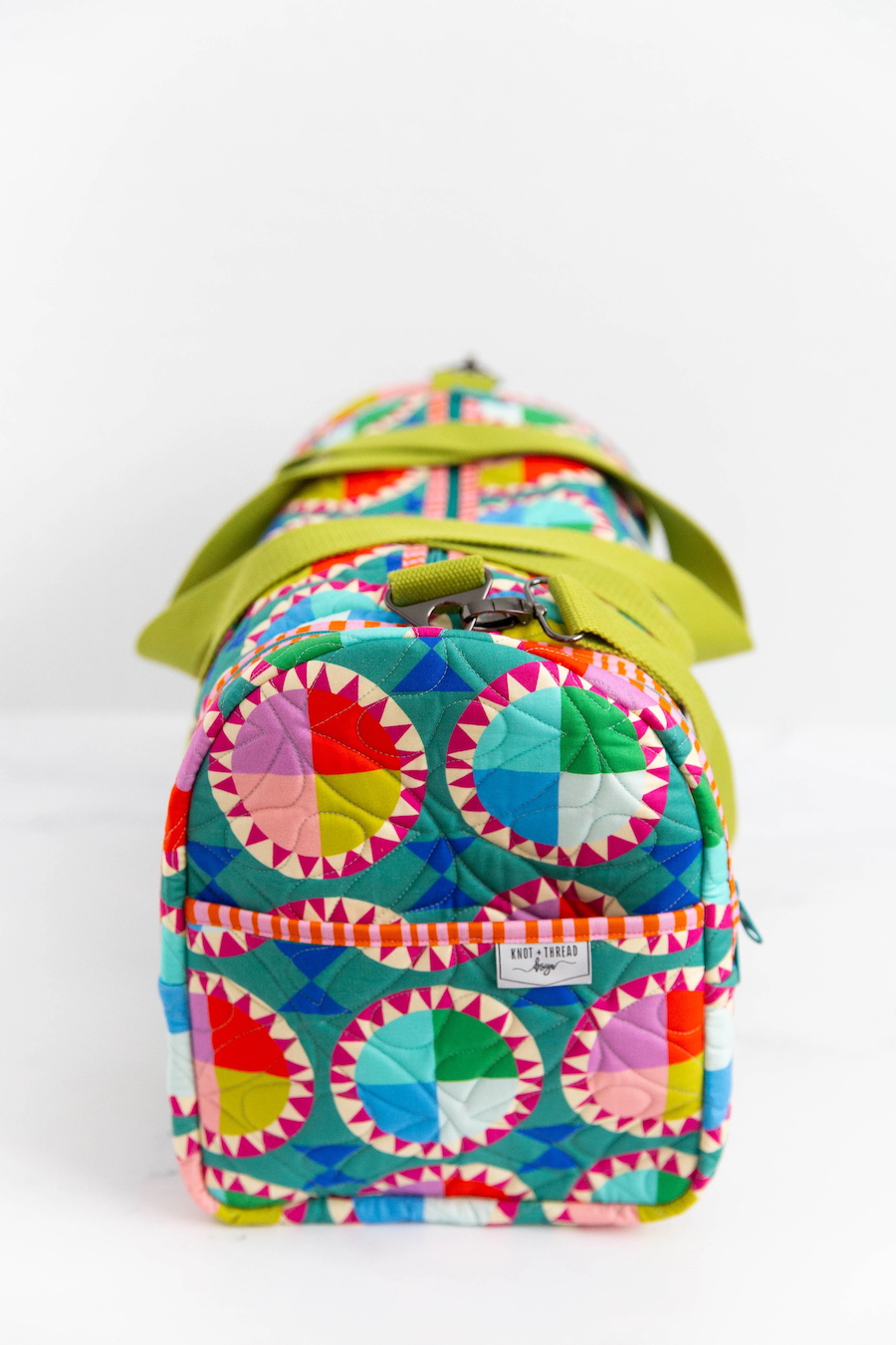 This versatile quilted duffle features two zippered end pockets for secure storage and two slip pockets for quick access. Perfect for a weekend getaway, gym essentials, or everyday use, the Lucy Duffle is the ideal combination of practicality and charm. It’s named after a sweet little niece.