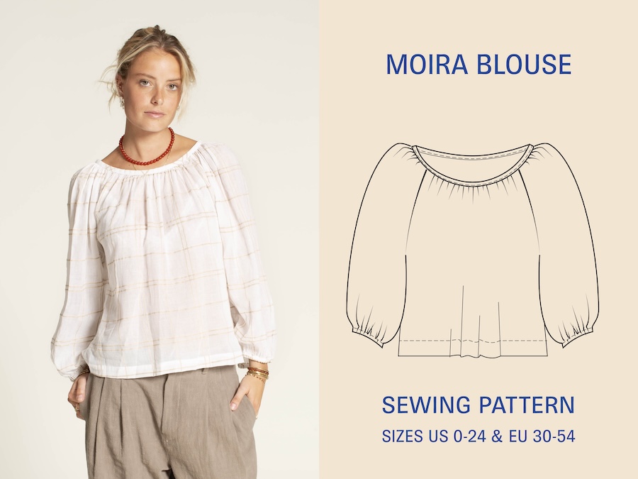 The Moira pattern offers two romantic garment options in one design: a flowing blouse and a versatile dress. Both versions feature a scooped neckline with gathers and raglan sleeves for a relaxed yet stylish silhouette. Choose from the blouse with raglan sleeve lengths of 1/2, 3/4, or 7/8, or make a tiered dress in mini, midi, or maxi length with optional belt detail.