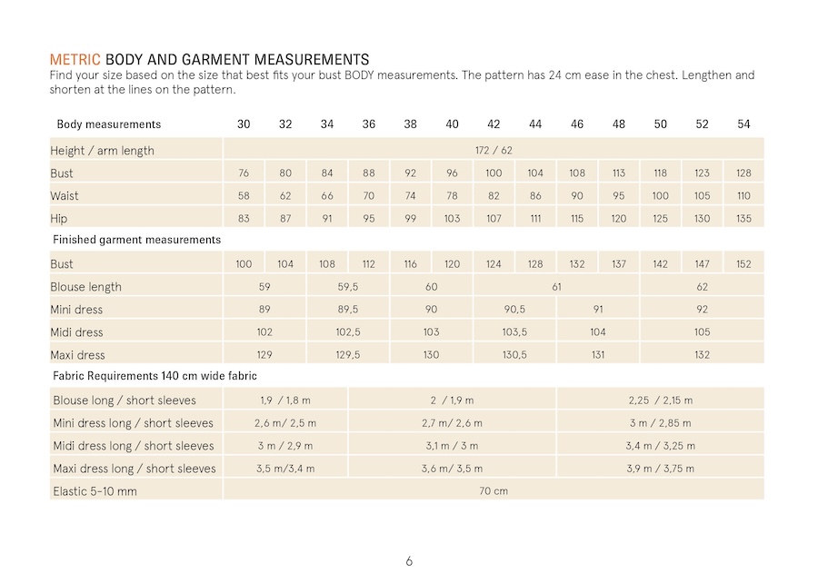 Suitable for a range of lightweight woven fabrics such as cotton voile, rayon, viscose, linen, or Tencel. Crisp fabrics will emphasise structure, while softer fabrics will drape beautifully.