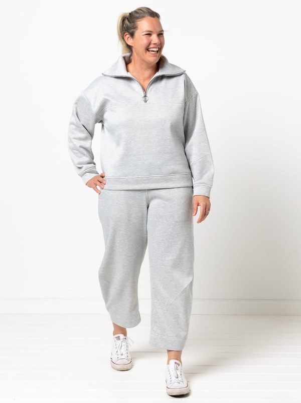 The Cassia Knit Top is a zip-front, long-sleeved windcheater-style knit top pattern with a collar...