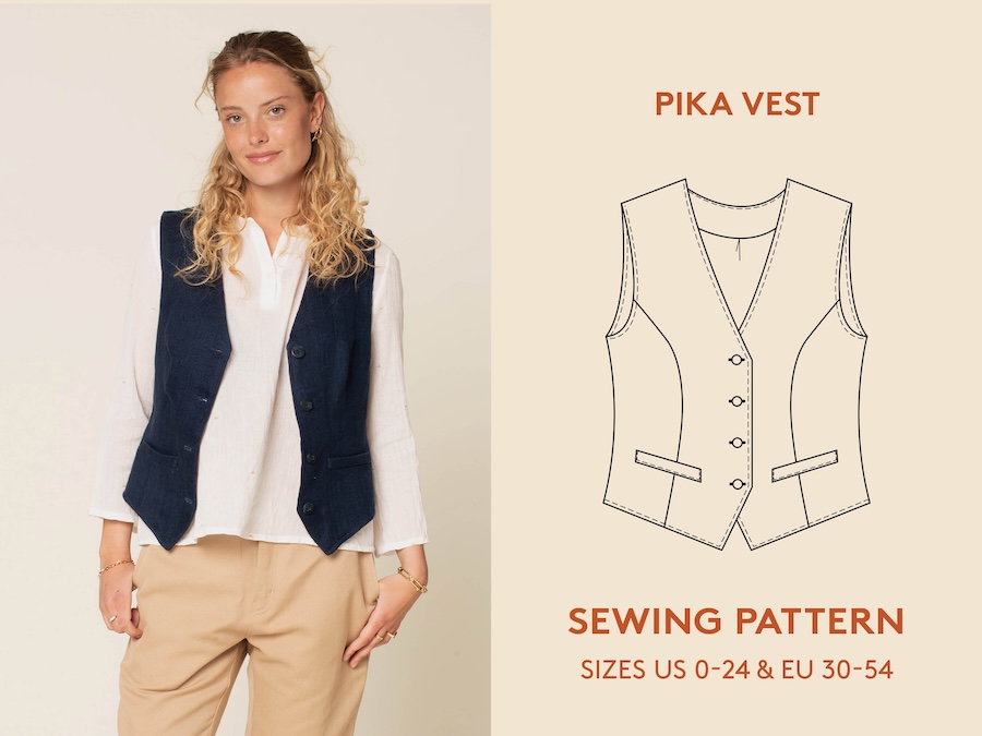2. #Skill Level#The sewing project has step-by-step illustrated instructions and a video tutorial on YouTube. The Vest sewing pattern is straightforward. You will sew buttonholes and buttons, and if you follow the directions step by step, you will make a beautiful Pika Vest.