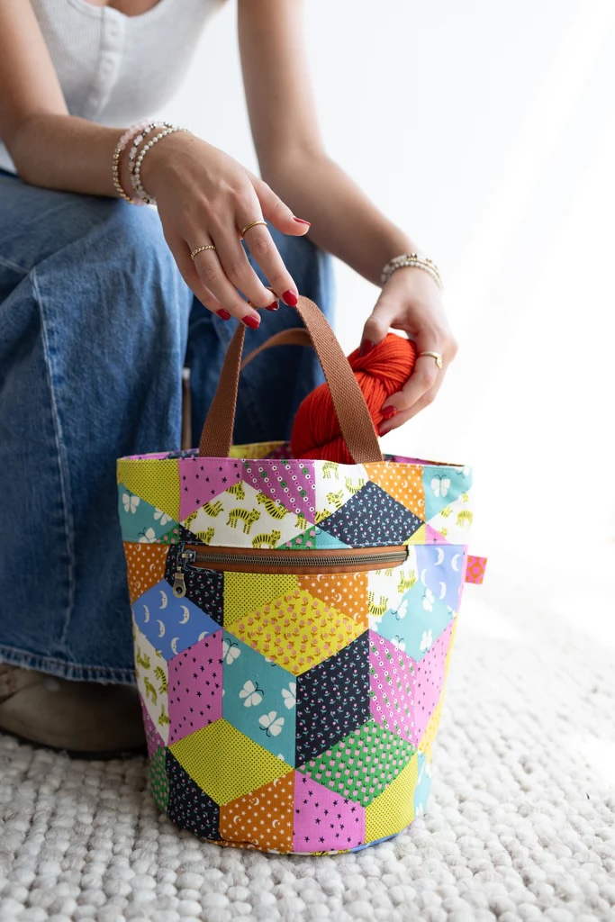 The Quarry Tote is a versatile and practical flat-bottomed tote bag pattern available in two sizes, with a bonus zippered pouch included. It features a front zippered pocket and a range of optional elements such as handles, crossbody strap, and a choice of closure styles including recessed zipper, magnetic snap, Loxx fastener, or metal snap. The bag is ideal for various uses—from carrying knitting or crafting supplies to serving as a lunch or everyday bag. With its thoughtful design and customizable features, this tote is one you'll reach for again and again.