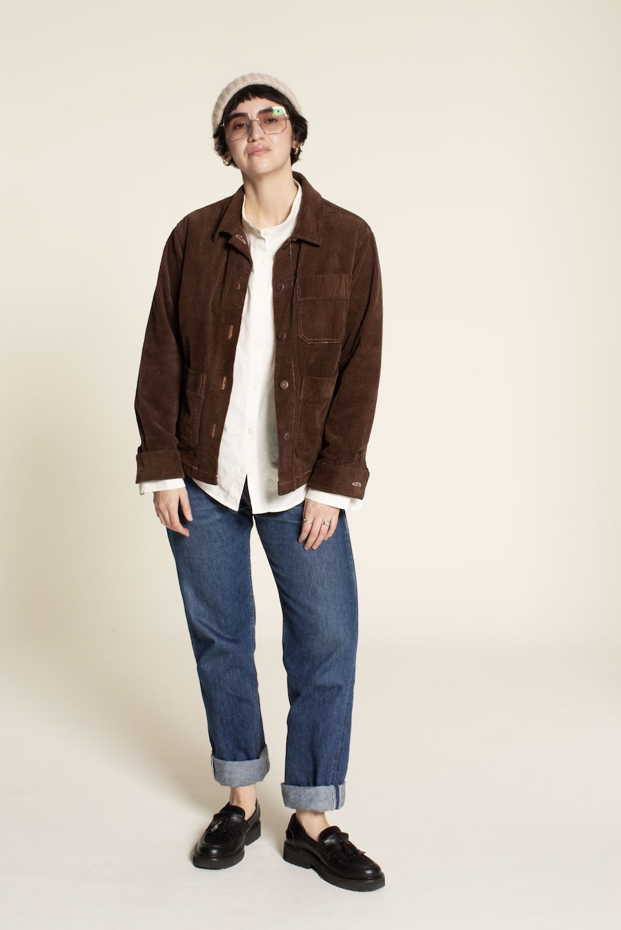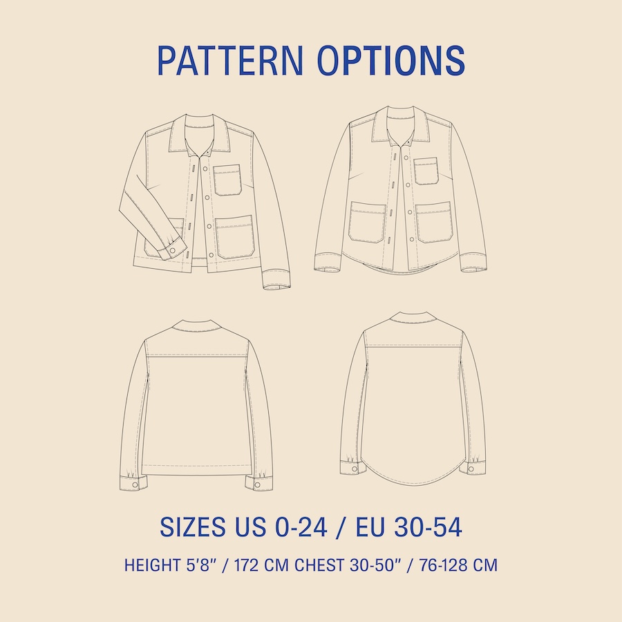 1. #About#A workwear-inspired Jacket style with a boxy and casual fit. The Canvas Jacket sewing pattern is perfect as an outerwear piece in transitional weather or a modern alternative to the classic cardigan for a day in the office. The two-piece sleeves are roomy enough to layer over a knit in the cooler months. The Canvas Jacket comes alive with chunky topstitches. A retro Barnyard or carpenters jacket for woven fabric such as canvas, denim, corduroy, or cotton drill..
