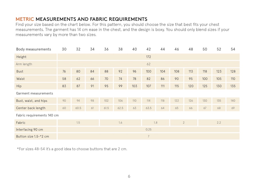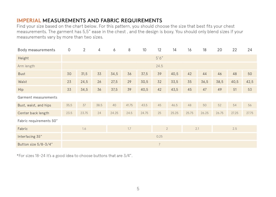 3. #Fabric & Notions#The jacket is suitable for all medium-weight woven fabrics such as cotton, linen, wool, or other fabrics that are comfortable to wear. Choose interfacing that works with the weight of the fabric. Choose the button size as indicated in the size spec.
