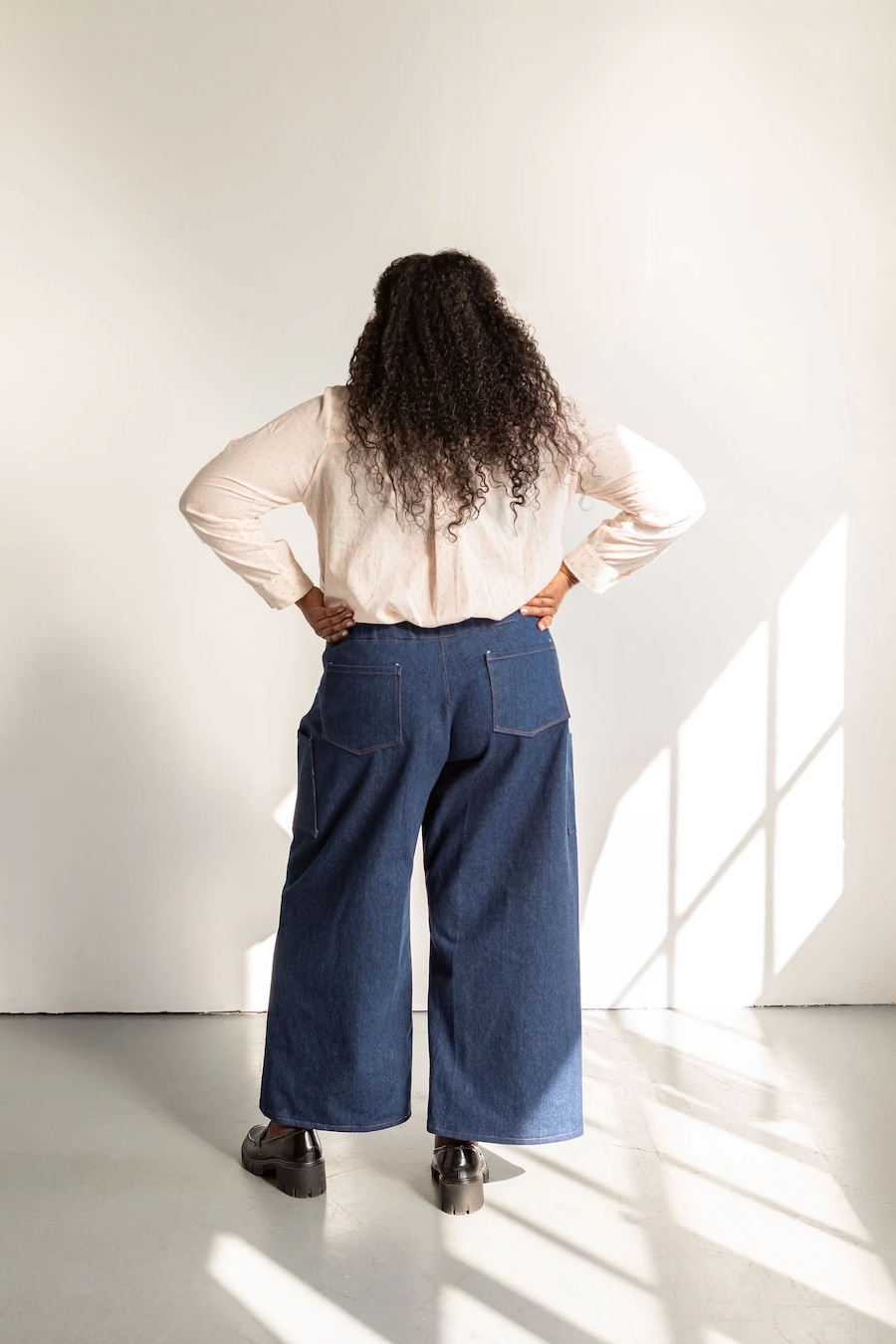 The Flâneur Pants are designed for mid- to heavy-weight woven fabrics. For a structured, workwear-inspired look, use cotton canvas, denim, or twill. For a lighter, flowier feel, opt for a 6–8 oz linen, suiting, or rayon twill.