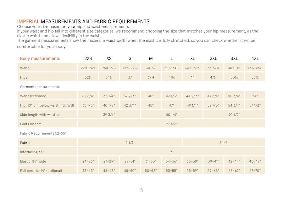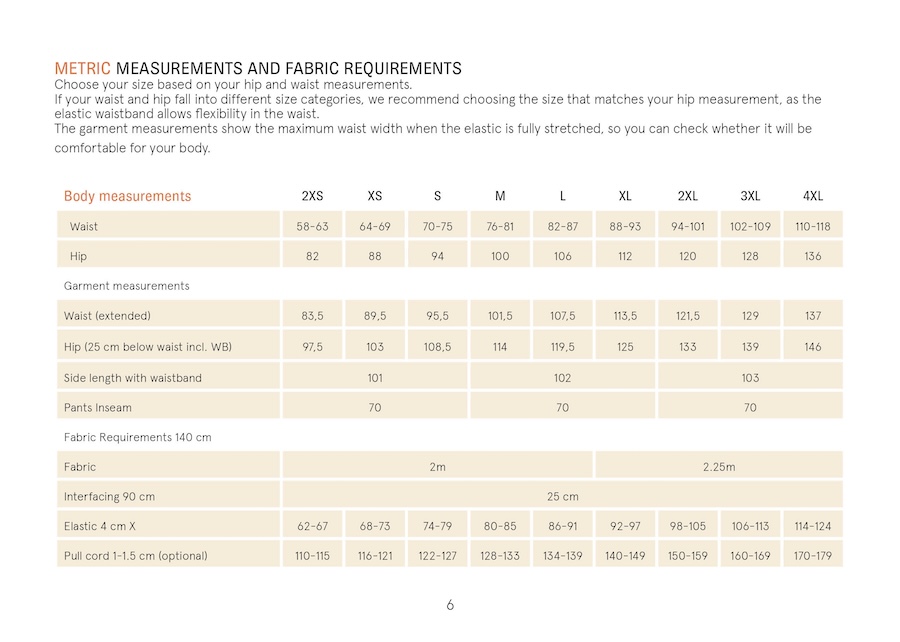 This unisex design accommodates different waist-to-hip ratios by including extra ease in the waist, adjusted with elastic and an optional drawstring for a flexible fit across all genders. The pattern includes layers for each size, trimless pages, seam allowances, fully illustrated instructions and a YouTube sew-along video is also available.