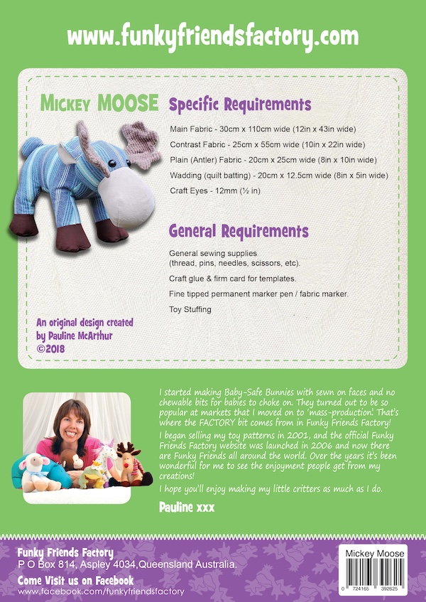 Mitch the Moose is a fun, characterful soft toy with big antlers, a chunky body and a friendly face. He looks fantastic made up in all kinds of fabrics — from bold prints to natural tones — and his large antlers give him plenty of personality. A great project for creating a woodland-themed companion or a festive moose friend.