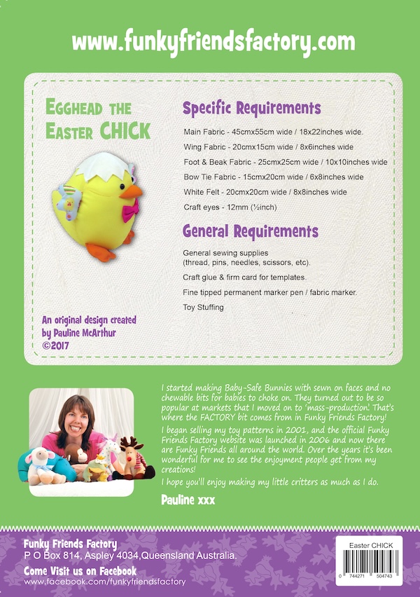 This chubby chick hatched out just in time for Easter! Use your colourful fabric scraps to make some chirpy chicks. Kids will love this simple pattern as they can customise their own egg-shaped Easter friend with a bow-tie and cute egg-shell hat!