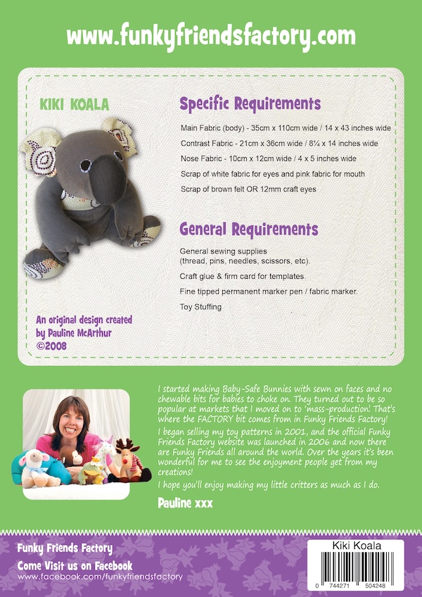 Kiki is one of the Aussie-Mates toy designs — koalas are uniquely shaped so this pattern details the distinctive hunch-back and cuddlesome pose beautifully. Her large eyes give her a baby-look to melt your heart! Everyone will fall in love with this little bush baby.