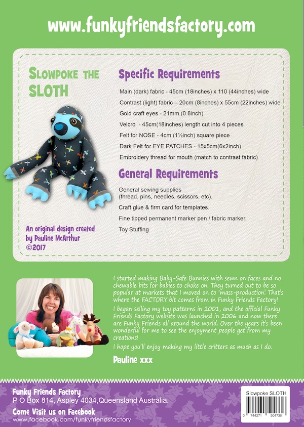 Slowpoke is a seriously cute three-toed sloth who loves snoozing, hanging around and taking it easy. He comes with Velcro claws so he can attach himself to the nearest siesta spot for a bit of shut-eye. With his charming smile and relaxed pose, he’s perfect for fun fabrics, lounging toys or quirky décor.
