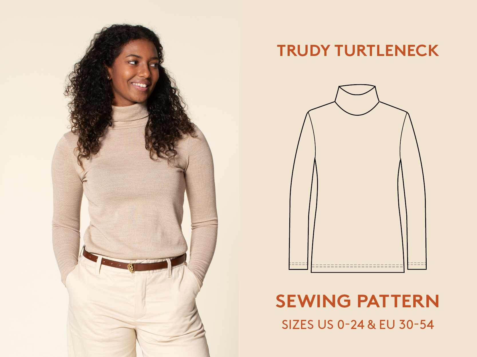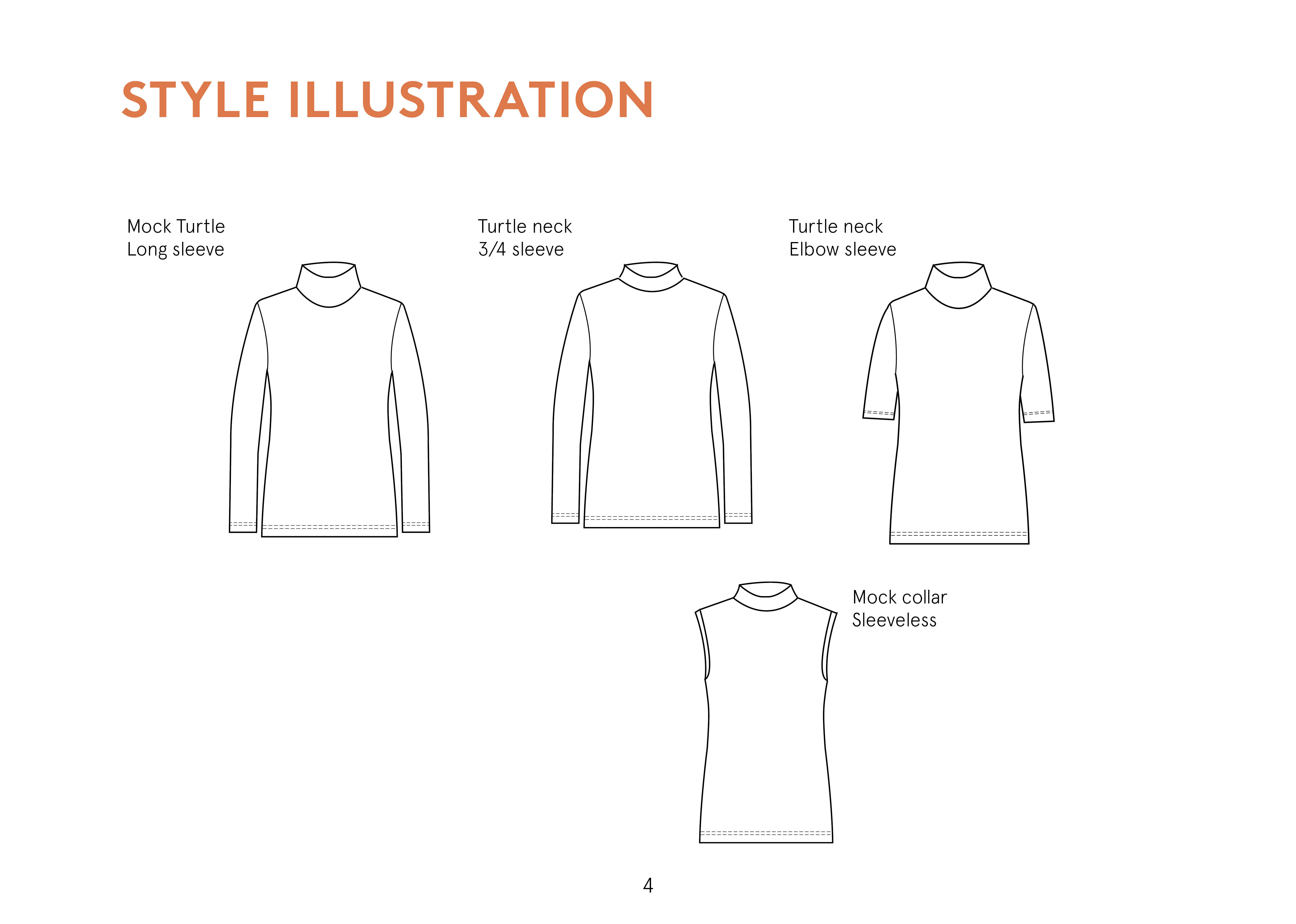 1. #About#Trudy Turtleneck T-shirt sewing pattern is a fitted T-shirt with two collar options; a high collar (6"/ 15 cm) and a low collar (2.5" / 7 cm). The blouse fits close to the body and has a straight hem. US 0-24 and EU 30-54.