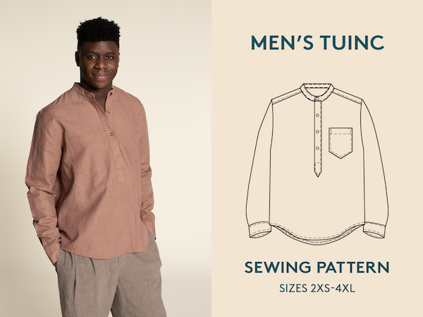 The Mens Classic Tunic sewing pattern is a gorgeous pull-on tunic with a banded collar and four-button front placket. The double yoke with a center-back box pleat creates a comfortable relaxed fit.