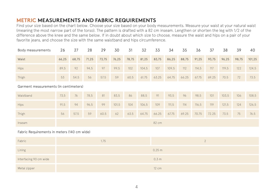 1. #About# WBM Women's jeans sewing pattern is a pair of classic, five-pocket slim jeans with straight legs. The jeans have a regular waist ending at the belly button and a curved waistband. The details include a front zipper, classic curved front pockets, a coin pocket, and pointed back pockets. Complete the look with heavy topstitching, rivets, and a jeans button.