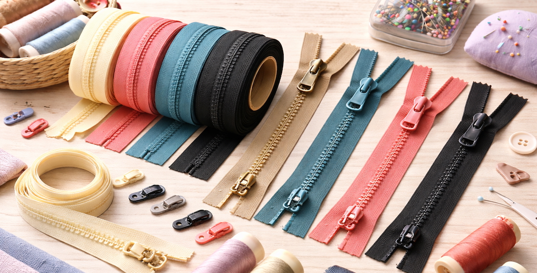 Zips for all uses in a variety of colours and types.